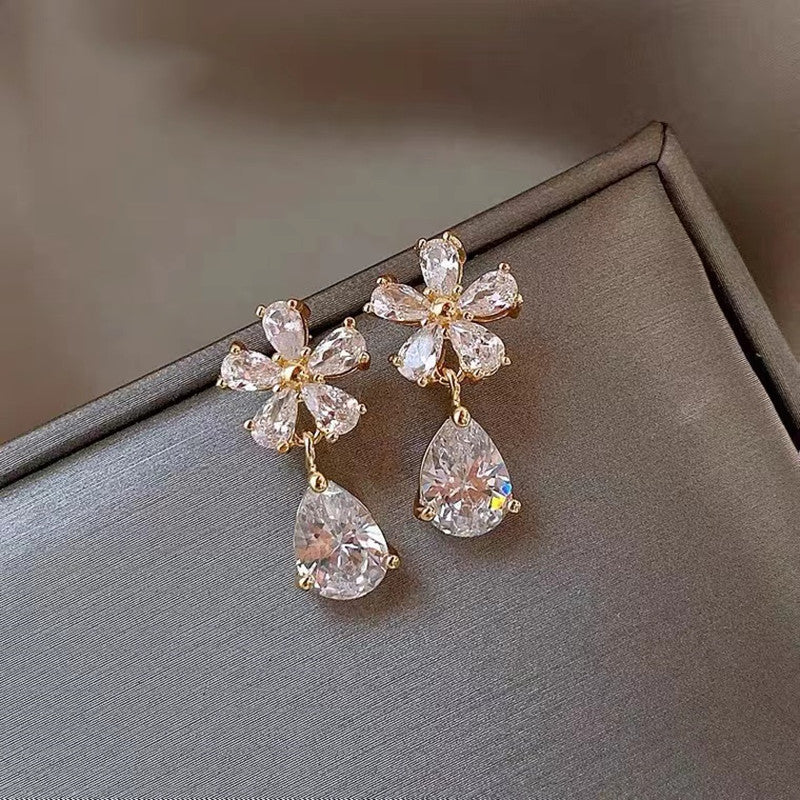 XE157 - Crystal Floral Drop Earrings