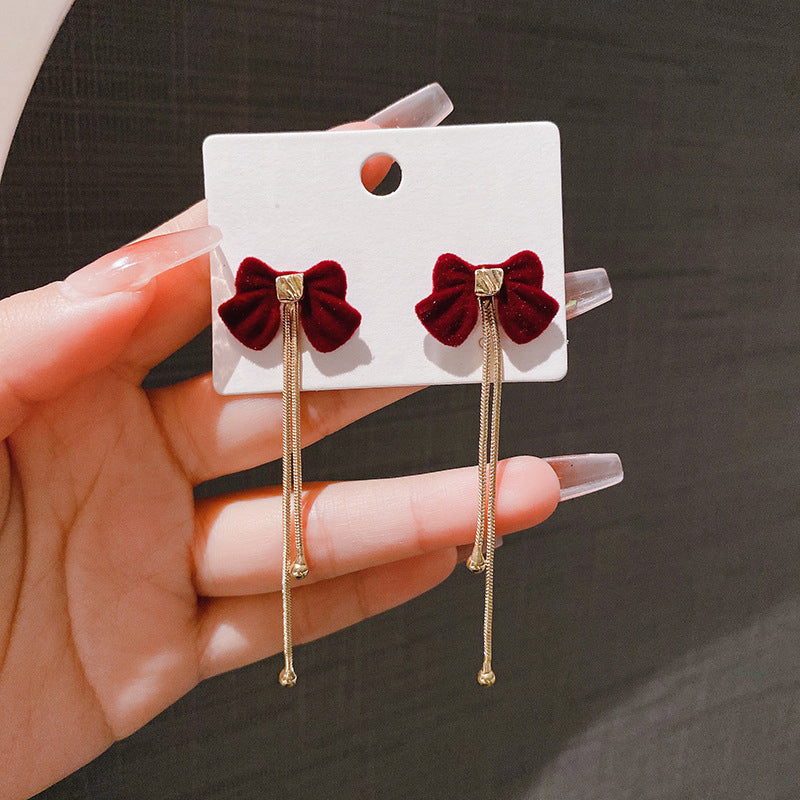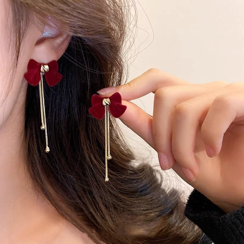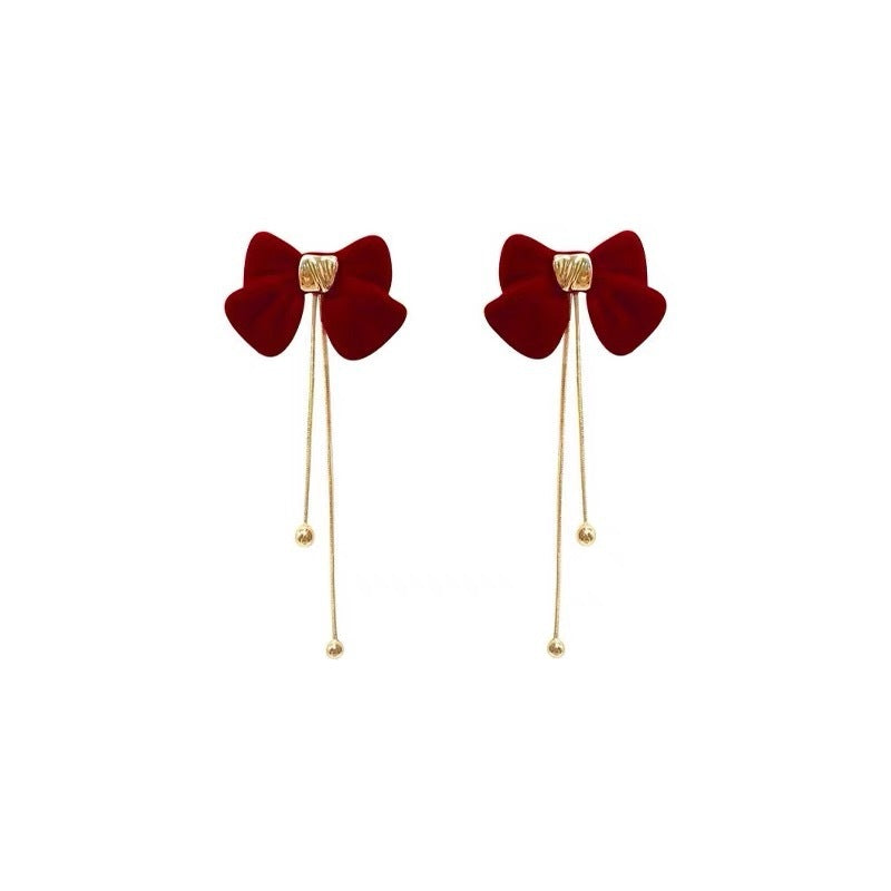 XE158 - Red Butterfly Bow Drop Earrings