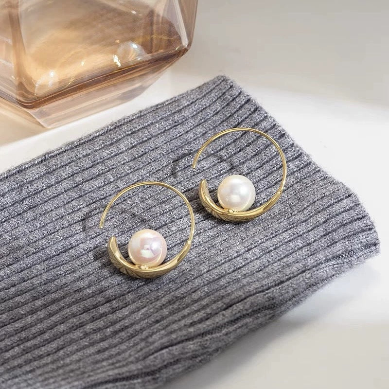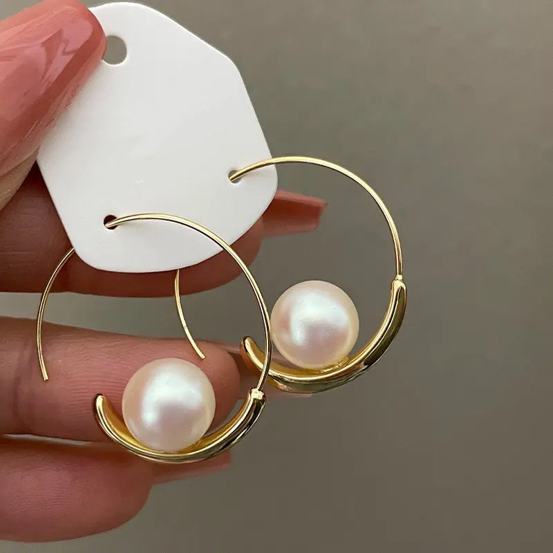 XE176 - Elegant Pearl Hoop Earrings